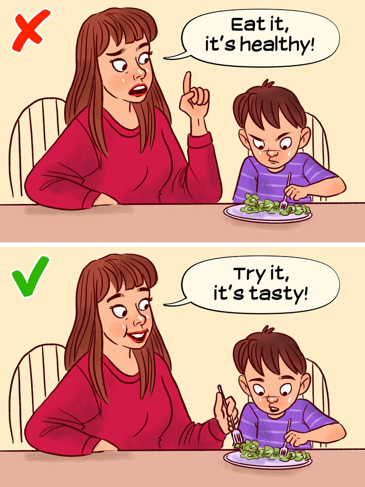 Researchers from the University of Chicago have found that for children, the word "healthy" is later used as the word "sweet." Because of this, they refuse to eat any healthy food. If you want your child to eat, for example, it is better to say that it is cabbage, sweet and efficient.