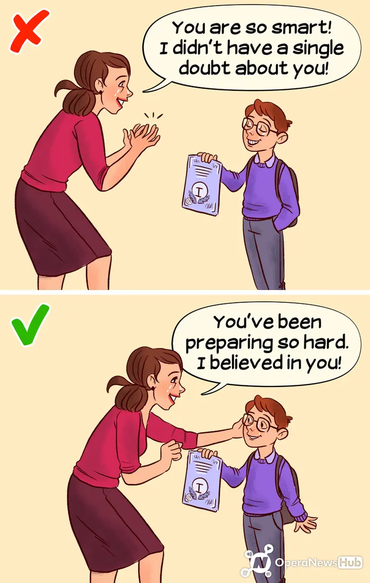 At first glance, this phrase seems like a good way to praise a child. However, they may make them think that it is not necessary to put forth much effort to succeed, because they have the natural ability or the wisdom to do so. It's best to encourage their behavior, not their children's work and their efforts. For example, "they've been working very hard on this project." Or “I believe they will do it because you spend a lot of time and energy on this task.”